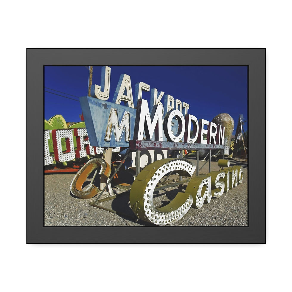 Modern Jackpot Framed Photo Art - Vintage Vegas Neon Casino Signs, 7 variants
